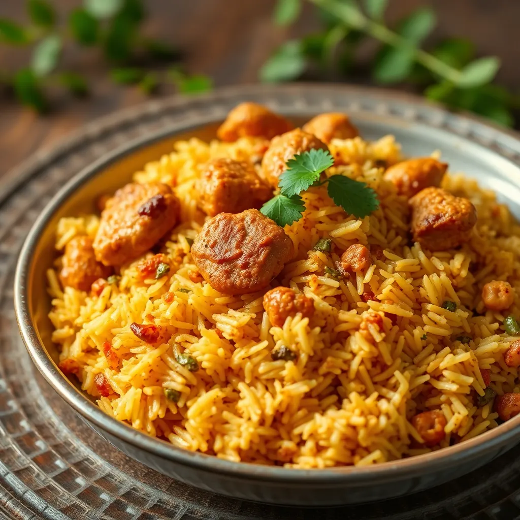 Traditional Bangladeshi chicken pulao with aromatic spices.